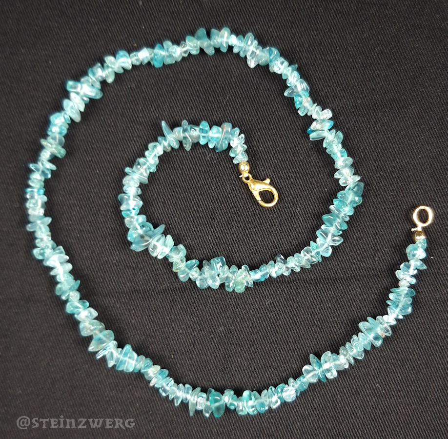 Kette aus getrommelten Apatit-Splittern mit goldfarbenem Karabinerverschluss.