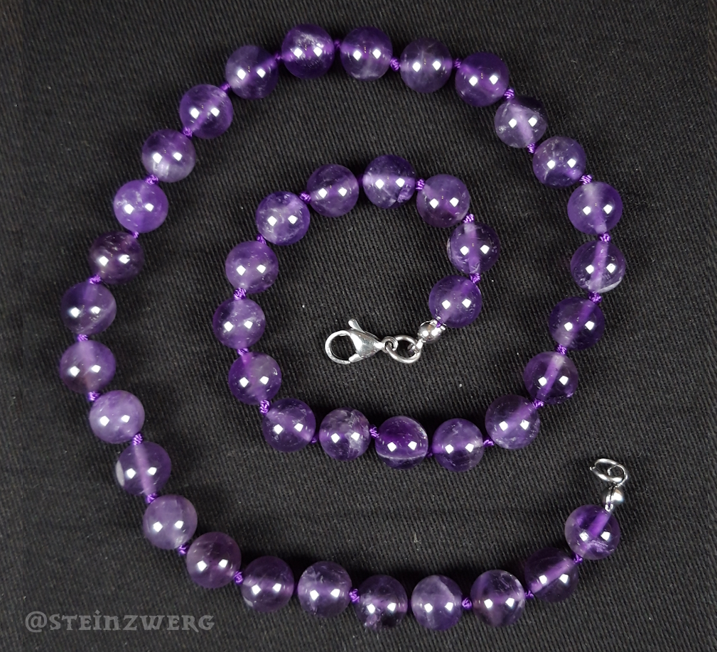 Kugelkette aus Amethyst mit silberfarbenem Karabinerverschluss.