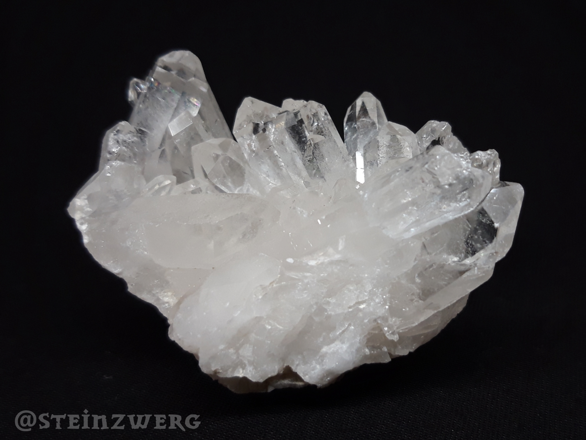 Natürlich gewachsene Bergkristallstufe mit schönen glasklaren Kristallen.
