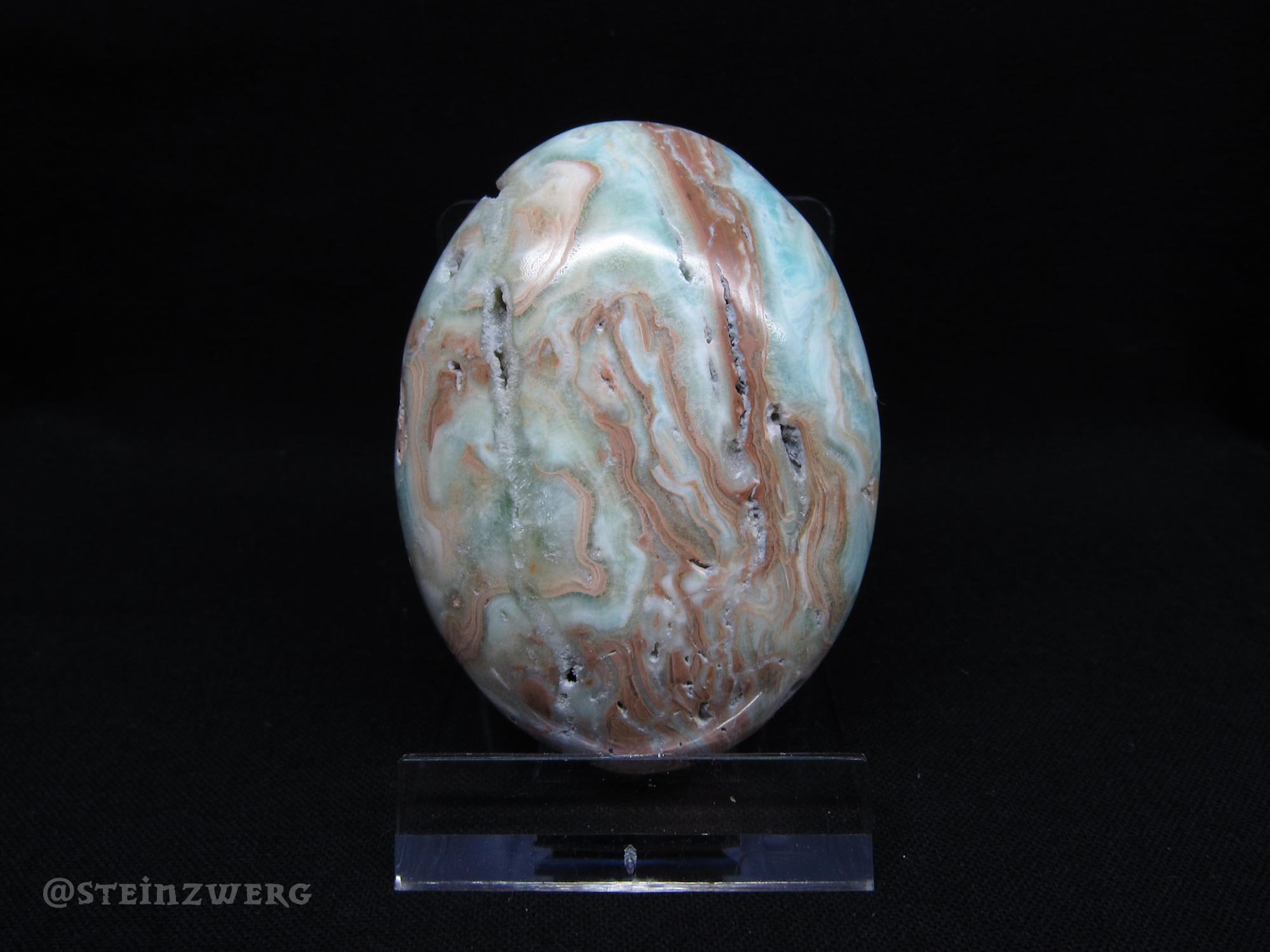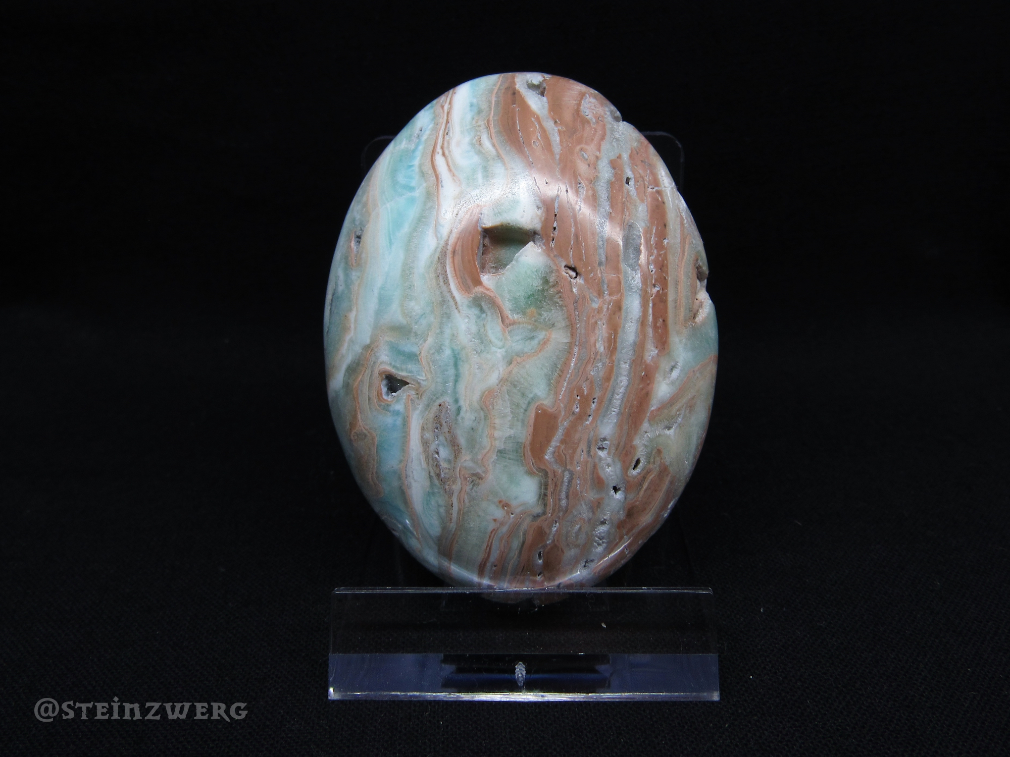 Karibischer Calcit ist eine Mischung der beiden Mineralien blauer Calcit und braunr Aragonit.