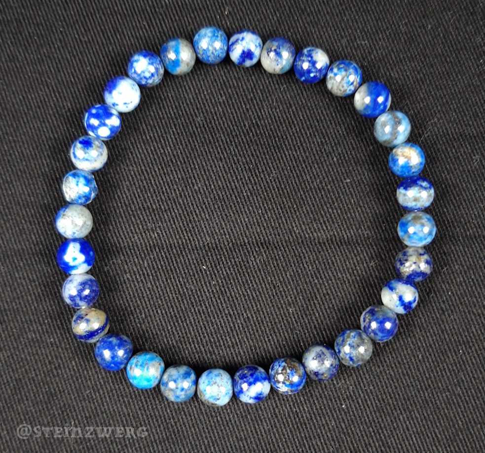 Kugelarmband aus Lapislazuli. Es handelt sich hierbei um ein Naturprodukt, welches in Form und Farbe variieren kann. Sie erwerben 1 Exemplar vergleichbarer Qualität.