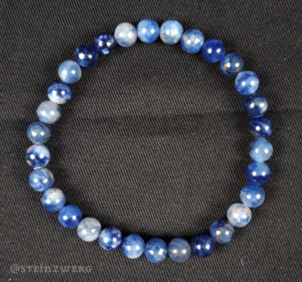 Kugelarmband aus Sodalith. Es handelt sich hierbei um ein Naturprodukt, welches in Form und Farbe variieren kann. Sie erwerben 1 Exemplar vergleichbarer Qualität.