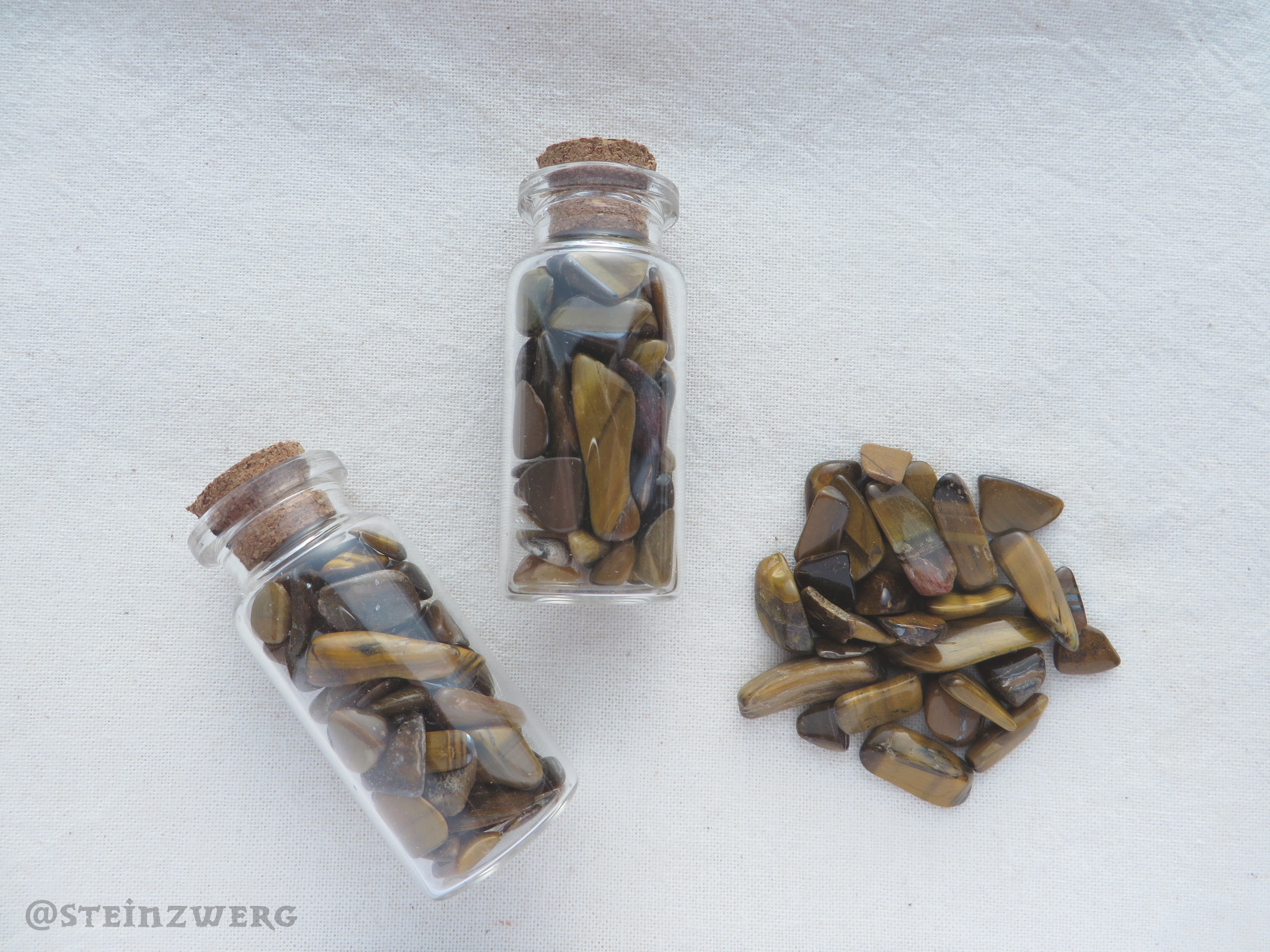Glasflächchen mit getrommelten Tigeraugesteinchen.